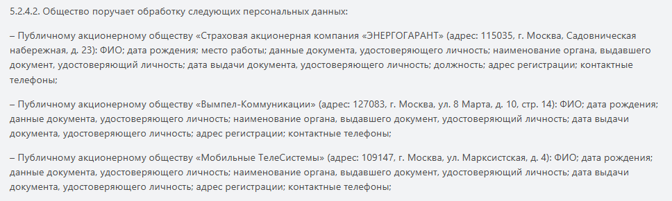 Каждая передача данных оформлена отдельным договором. Но для пользователя это означает, что его информация гуляет по десяткам организаций. Не всем это понравится.