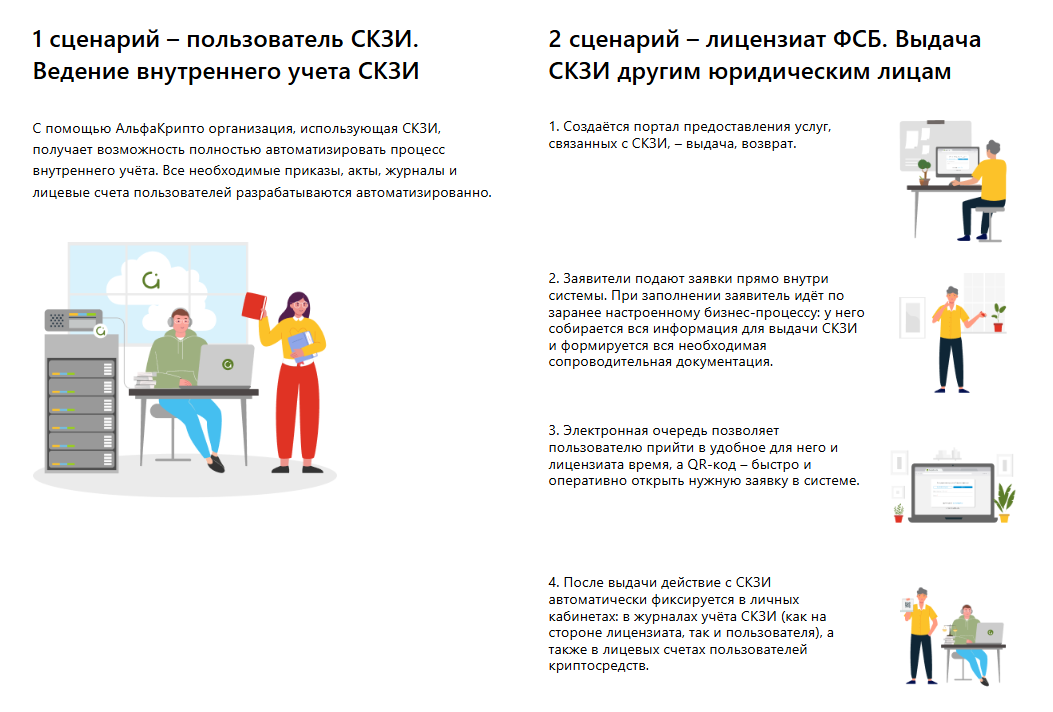 Сервис работает по двум сценариям. Первый – для внутреннего учета в организациях. Второй – для лицензиатов ФСБ, которые выдают криптосредства другим компаниям.