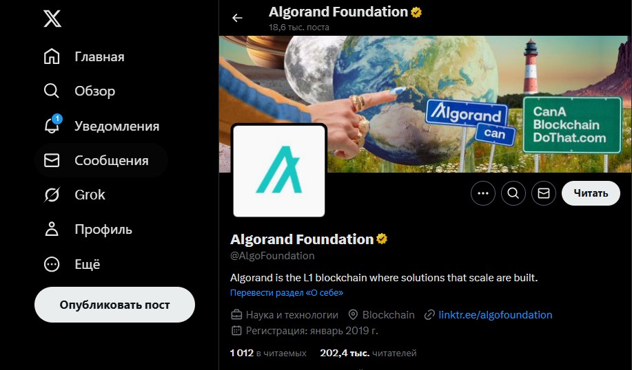 Команда девелоперов проекта довольно открыта и старается поддерживать связь со своим комьюнити. Основные новости о криптовалюте ALGO проще всего отслеживать через их официальные каналы. В соцсети X (@Algorand Foundation) публикуют самые свежие анонсы, в LinkedIn (@algorandfoundation) – более деловые и партнерские обновления, а на YouTube-канале выкатывают интервью и обзоры технологий.
