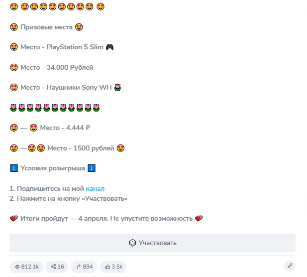 Оставьте комментарий, если были подписаны на данный телеграмм-канал и участвовали в розыгрышах якобы ценных призов.