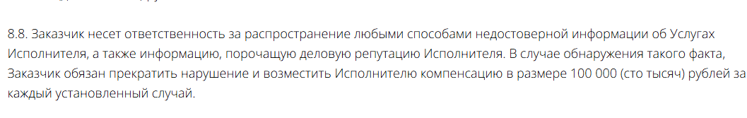 Фактически, если ученик напишет негативный отзыв, даже объективный, школу это может не устроить. В таком случае они могут попытаться выставить счет на 100 тыс. рублей за «порочащую информацию».