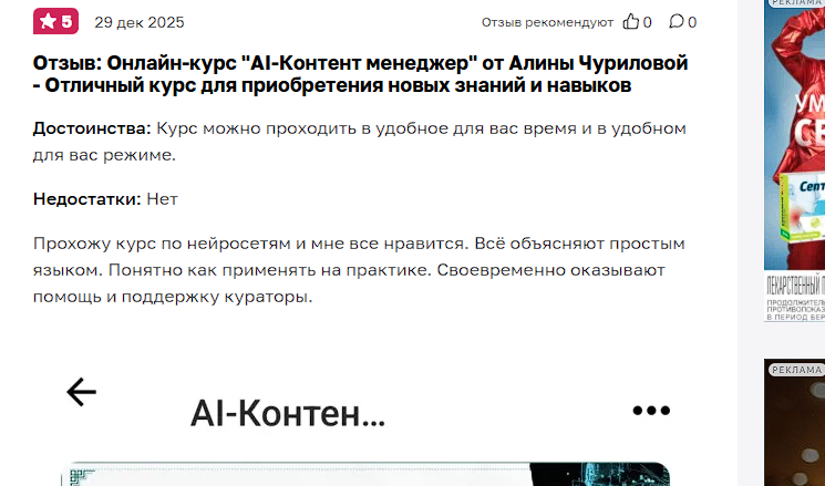 В независимых источниках все ещё доминируют положительные отзывы, но также встречаются и разоблачения Алины Чуриловой. Начнём с похвалы: чаще всего клиенты отмечают доступность и понятность для новичков – коуч умеет доносить информацию простым языком. Также хвалят практическую пользу и результаты: быстрое создание контента, новые идеи, высокое качество текстов и изображений. А еще людям нравится отзывчивая поддержка и регулярные выходы на связь с самой Алиной.