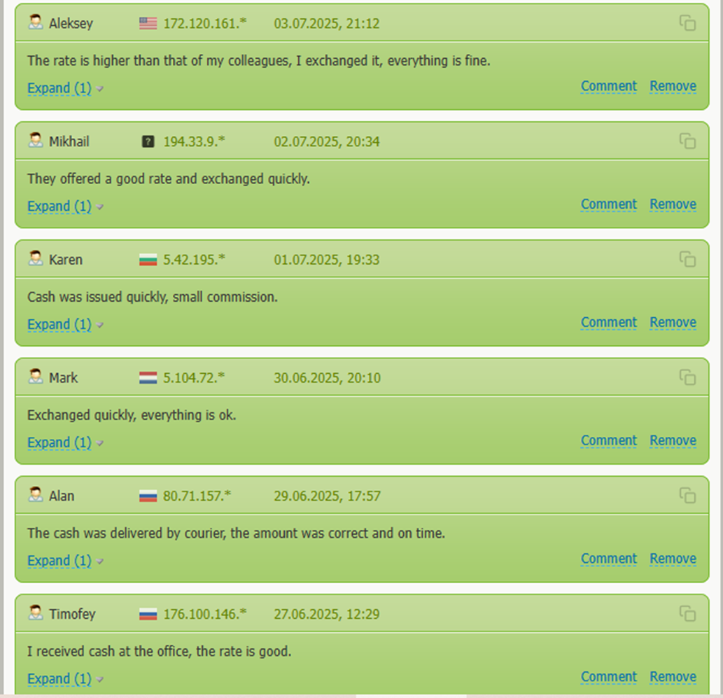 Клиенты обменника довольны качеством сервиса, скоростью зачисления денег, а также работой техподдержки. Негативных мнений нет.