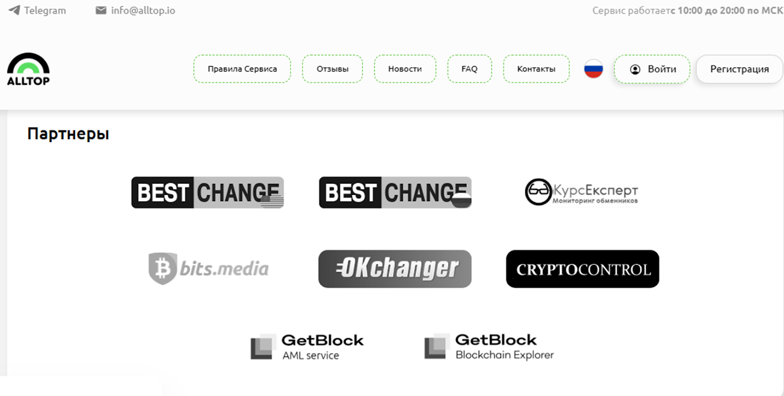 Alltop io – обменник, который замечен в партнерстве с крупными мониторингами и имеет немало положительных отзывов. Это служит веским основанием для доверия к проекту. Но важно понимать, что ни один обменный сервис не дает 100-процентной гарантии получения денег, риск их потери есть.