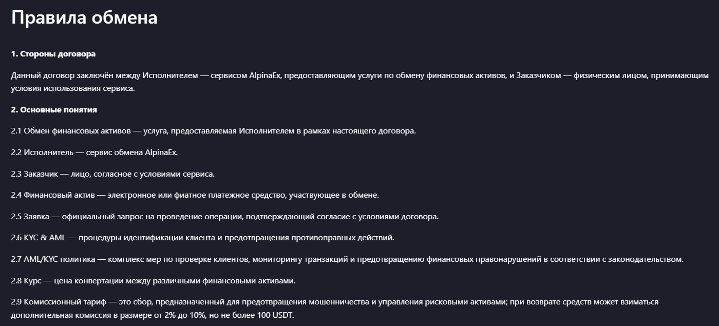 В целом Alpinaex может использоваться только для мелких обменов с минимальными рисками, поскольку пользователю приходится принимать на себя всю финансовую ответственность за корректность реквизитов и своевременность перевода. Для крупных транзакций предпочтительнее платформы с более прозрачными условиями проведения транзакций.