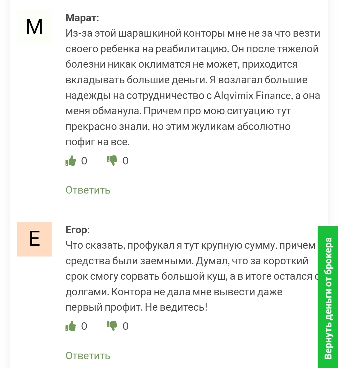 Отзывы трейдеров о работе с Alqvimix Finance