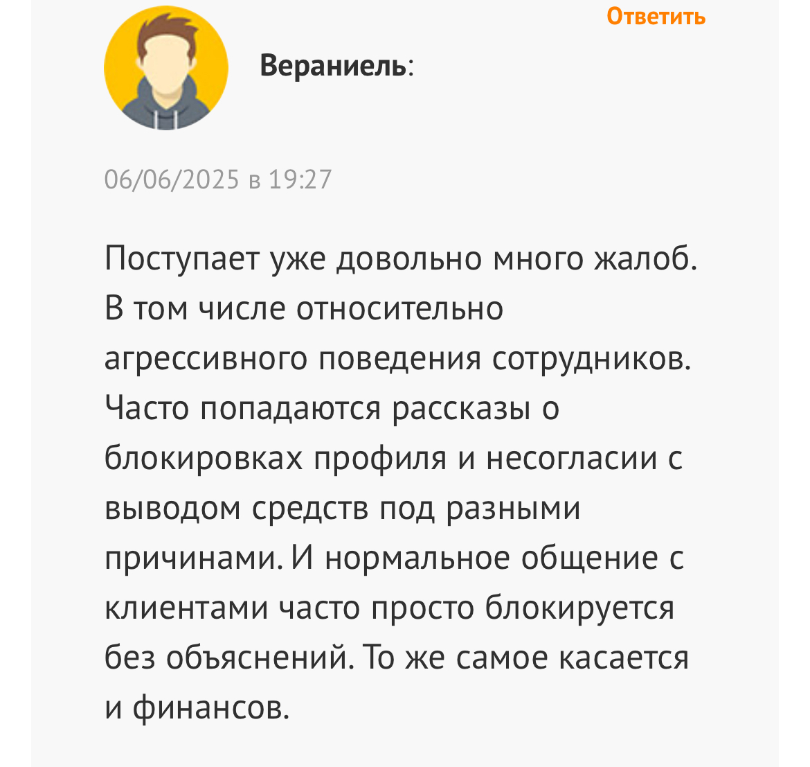 В сети мнение о проекте негативное. Эксперты подозревают, что платформа связана с мошенниками. На это указывают такие факторы, как подозрительный дизайн и анонимность авторов. Также есть комментарий пользователя. Он пишет о частых случаях блокировок и агрессивном поведении администрации. Это может сказаться на отношении к компании и ударить по ее имиджу.