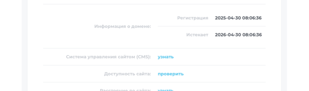 Мы проверили домен компании через 2IP. Выяснилось, что он работает с 30 апреля 2025 года. Это является малым сроком, что может говорить об отсутствии у фирмы опыта. Организации без бэкграунда реже привлекают аудиторию.