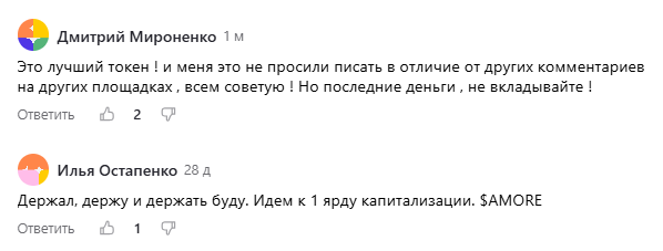 Если вы инвестировали в криптовалюту Аморе, оставляйте свои отзывы. Напишите, видите ли вы перспективы в этой монете и сколько смогли заработать на ней. Ваши комментарии будут полезны тем, кто думает инвестировать в этот токен.