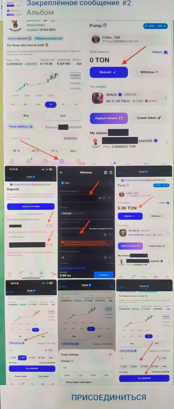 - Использовать Memo и TON address для пополнения coub кошелька с биржи.