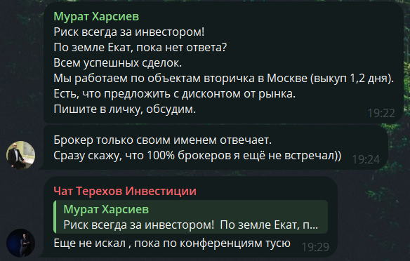 В самом канале можно оставлять комментарии. Иногда подписчики обсуждают предложения инвестора, но происходит это нечасто.