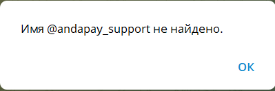 Еще один важный момент это контакты. На сайте была кнопка поддержки, но фактически коммуникация сводилась к телеграмм. При этом контакт @andapay support на момент проверки не существует, тг сообщает, что имя не найдено. Для финансового сервиса это критично, потому что в спорной ситуации у пользователя просто нет точки входа для решения проблемы.Продвижение обменника, судя по доступной информации, шло в основном через тг. Монетизация сервиса была максимально простой и типичной для лже-обменников. Пользователь переводил средства на указанный адрес или реквизиты, после чего сервис должен был выполнить обмен и отправить результат.