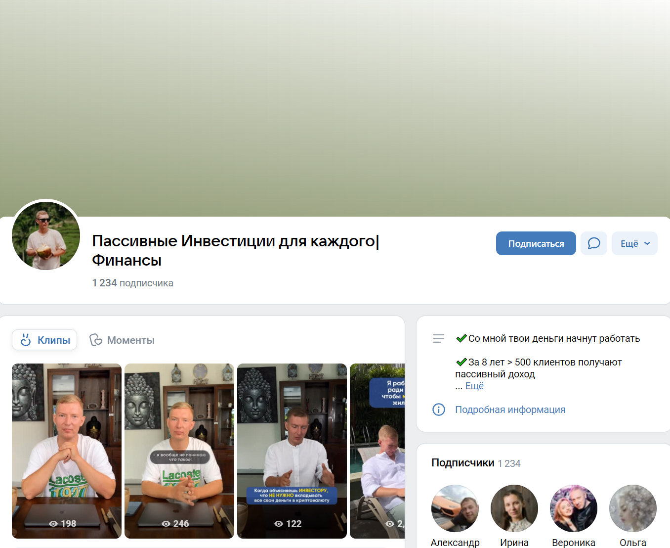 Несмотря на негативную репутацию, герой материала все еще продолжает вести деятельность в социальных сетях. Одна из доступных страниц находится в ВК и называется Пассивные Инвестиции для каждого Финансы. Ее можно найти по ссылке tradinginvestingegupov.