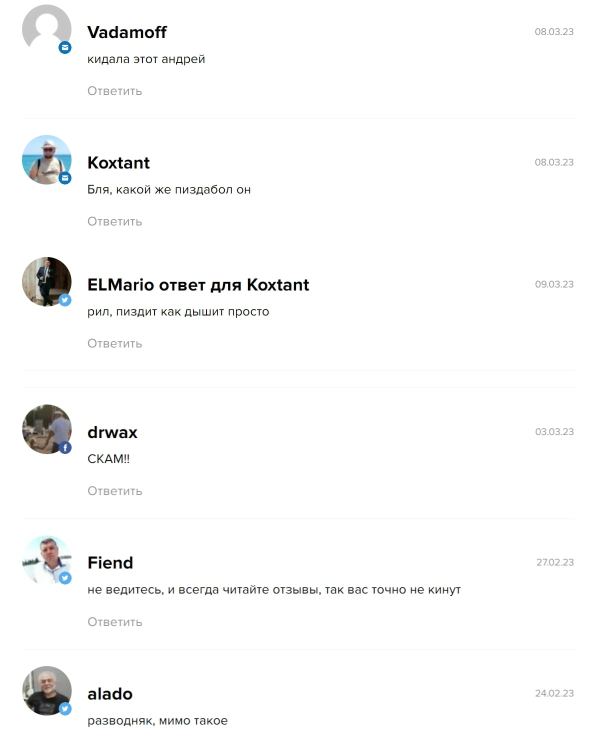 Утверждения об опыте в трейдинге также вызывают сомнения, ведь подтверждений данному факту не приводится. Более того, автор использует эту тему для продвижения каких-то сторонних товаров и обмана клиентов. Заброшенность социальных сетей и низкая популярность страниц лишь подтверждает, что мошенник давно отошел от дел и явно не заслуживает доверия в качестве трейдера.