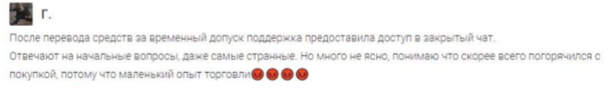 Андрей разочаровал меня, обучение у него посредственное, низкий уровень опыта в трейдинге, воды дает много, а вот реально полезной информации — катастрофически мало. Нет у Андрея лицензий, не дает гарантий заработка, не страхует средства. Не рекомендую с ним сотрудничать