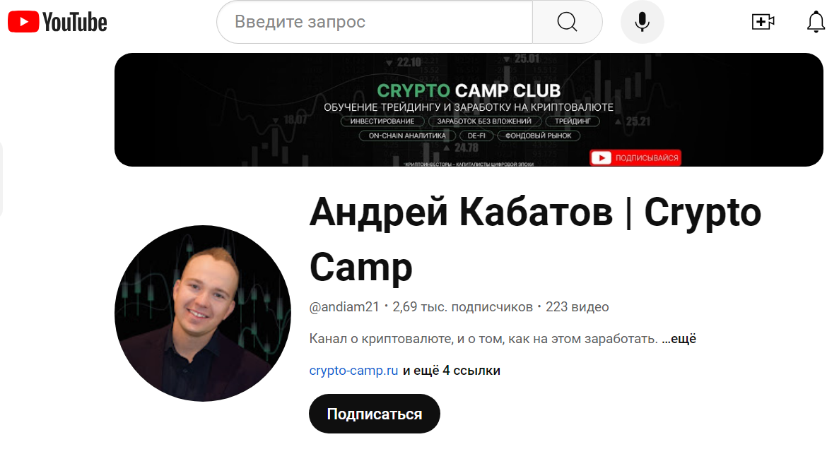 Трейдер Андрей Кабанов – особенности работы и отзывы подписчиков о его канале Crypto Camp