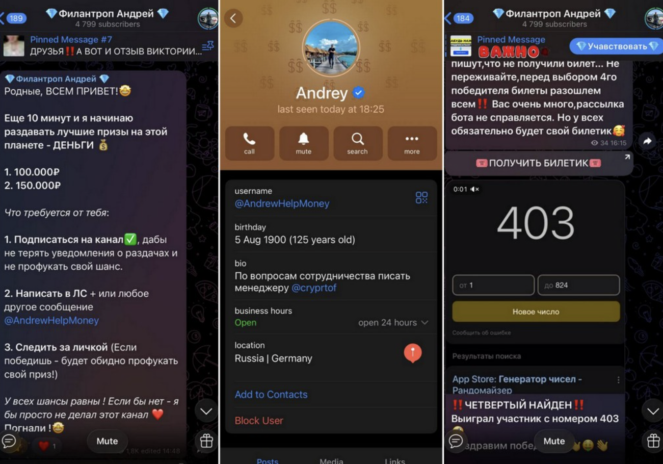 «Филантроп Андрей» — канал в Телеграмме, владелец которого проводил денежные розыгрыши среди своей аудитории. На начало ноября 2025-го года проект уже закрыт.