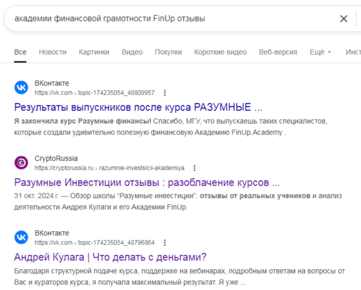 Он не упоминается ни в обзорах, ни в разоблачениях. Независимых отзывов об Андрее Кулага от клиентов и учеников по финансам тоже не видно. Причем о его академии Finup Academy, которая функционирует якобы около 6 лет, тоже нет существенных данных. Это показывает ее невостребованность и ставит под сомнение качество курсов.