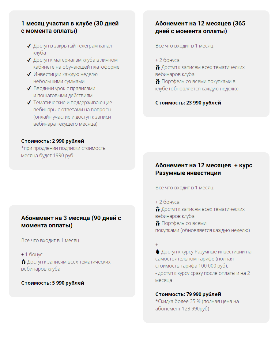 Также есть пакет «Подписка на клуб на год + курс Разумные инвестиции» за 79 990 рублей. В телеграм-канале Андрея Кулага о данном клубе речи нет, но есть информация о его личном клубе «#КлубАндреяКулаги».