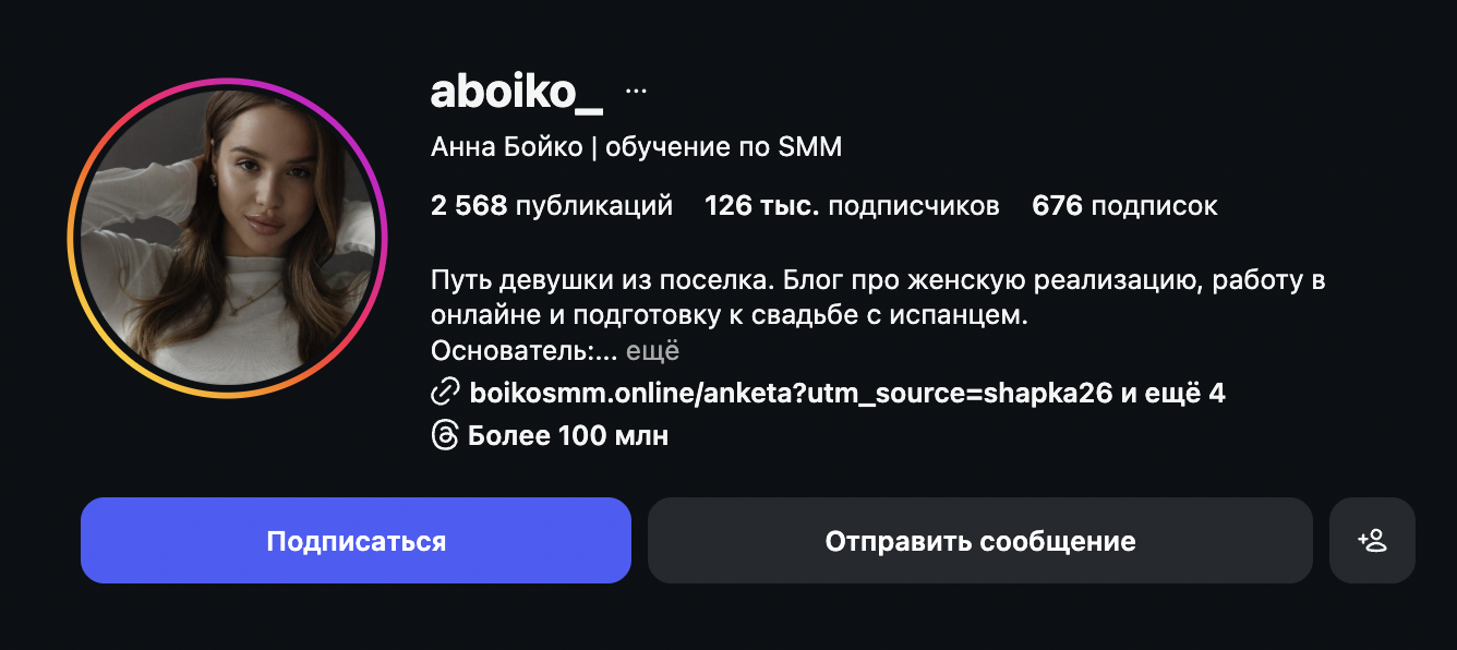 Часть из упомянутых ею фактов доказать невозможно, но некоторые вполне верифицируемые. Нельзя оспорить тот факт, что у Бойко действительно большая аудитория в Instagram. Однако это еще не доказывает, что у нее есть глубокие знания в SMM и/или способность передавать их другим.
