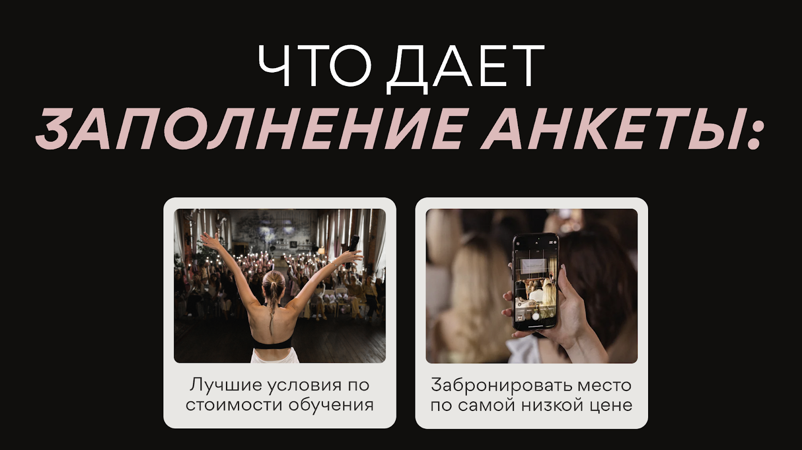 Если верить словам Анны Бойко, то заполнение анкеты позволит клиенту забронировать место дешевле и получить лучшие условия обучения. В этом предложении нет никакой конкретики.