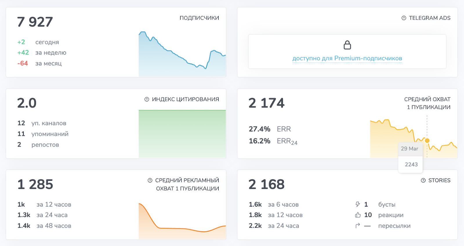 Скорее всего, коуч прибегает к агрессивной рекламе или накрутке подписчиков в тг-канале. Если посмотреть на графики статистики, то хорошо виден постоянный отток аудитории и резкие всплески, которые показывают ее рост. То есть, Анна пытается привлечь читателей, но ее контент не интересен людям и они отписываются от ленты. Такая ситуация выглядит немного странно для SMM c 7-летним опытом и учениками, которые зарабатывают 40 млн рублей.