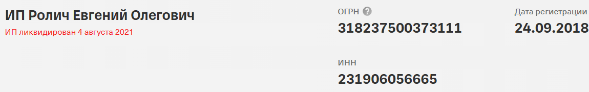 Сервис «Т-Банка» сообщает, что данный ИП ликвидирован еще в 2021 году. Таким образом, в 2026 году девушка ведет предпринимательскую деятельность нелегально.