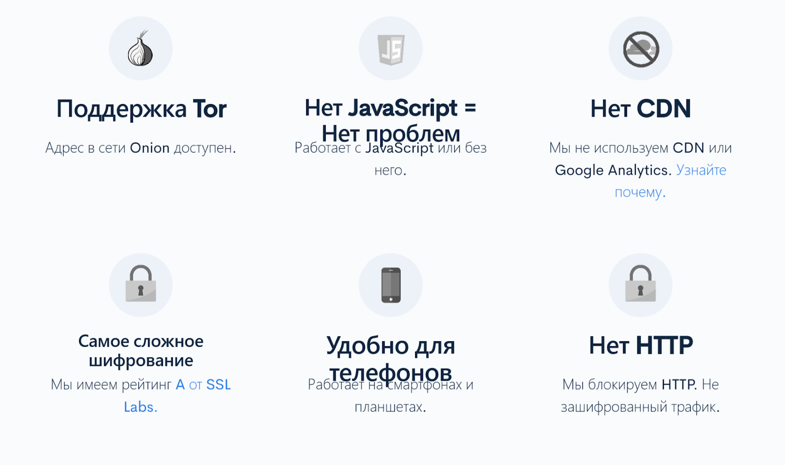 - доступность адреса в Онион-сети и поддержка ТОР;
