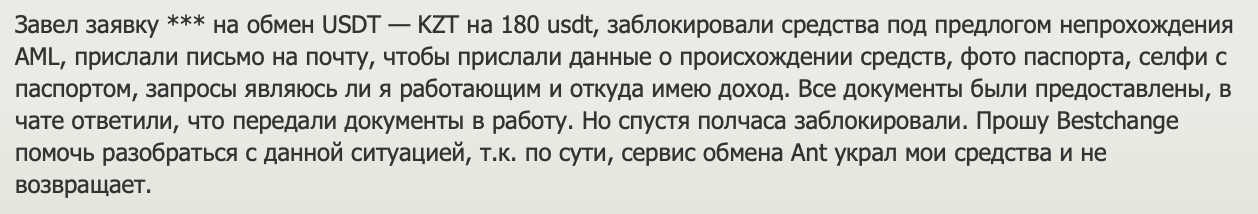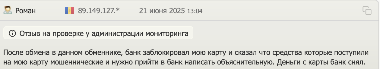 Суть негативных отзывов сводится к следующему: обменник блокирует криптовалюту пользователя и полностью отказывается проводить обмен или возвращать средства.