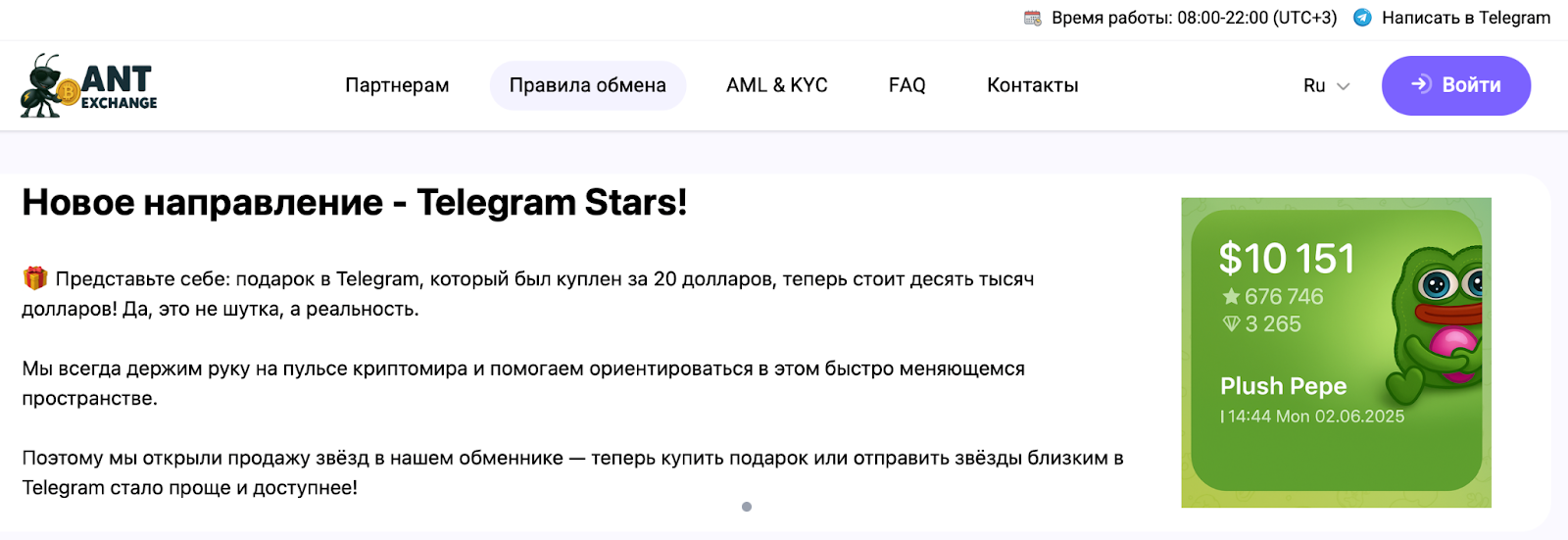 Общая характеристика обменника Ant Exchange