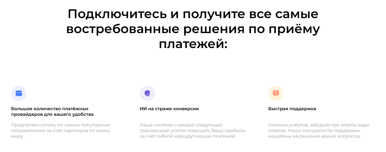 Преимущества проекта описаны на официальном сайте достаточно скудно. Юзерам, допустим, обещают большое число платежных провайдеров, однако даже не перечисляют их и не называют точное количество. Кроме того, встроенный ИИ якобы учится повышать прибыль с каждой следующей транзакцией, но звучит это неубедительно. Ситуация с поддержкой точно неоднозначная. Создатели уверяют, что она реагирует на все максимально быстро, но нам даже неизвестен ее график работы.