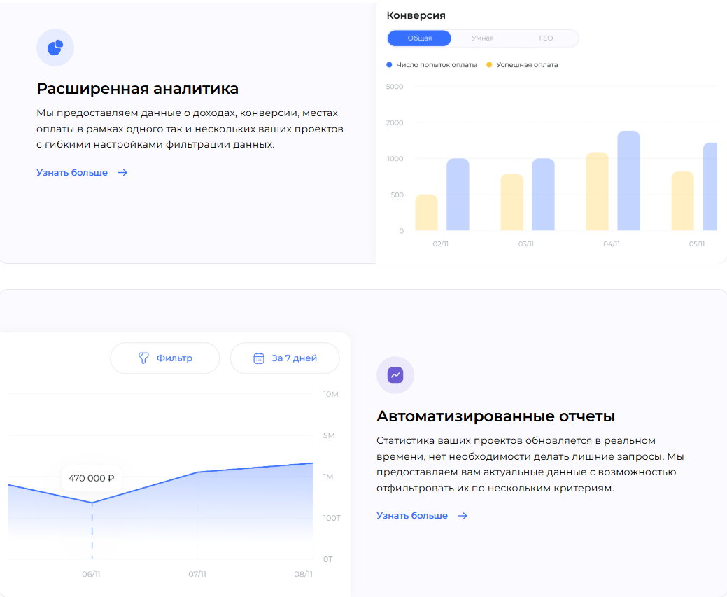 Все остальные заявления на площадке Антилопей в основном связаны со сбором статистики. Система, например, якобы предлагает расширенную аналитику и автоматизированные отчеты. Вот только при попытке узнать больше, нажав на соответствующую кнопку, попадаем на тот же самый сайт: никаких деталей не появляется.