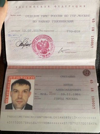 Сметанин Антон Александрович — из Москвы. Вероятно, именно в этом городе он и проживает. Точно сказать, что этот документ принадлежит автору Крипто канала, нельзя — фотография может быть вклеена или паспорт может быть фальшивым.