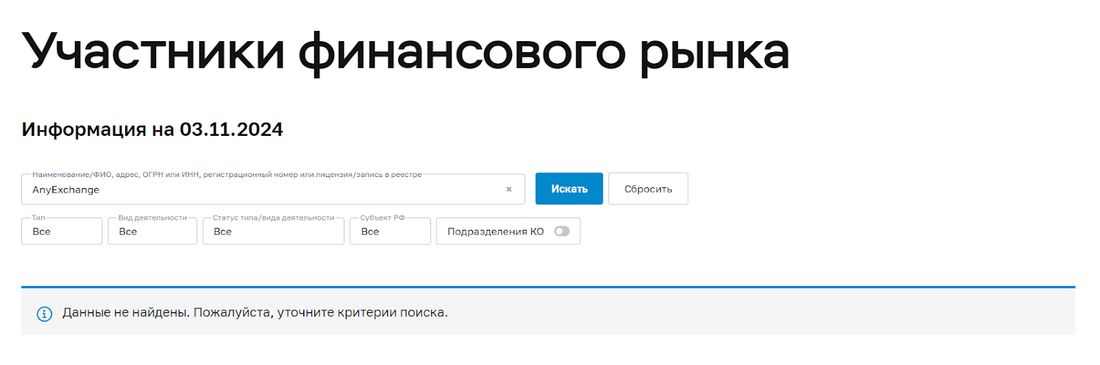 Мы провели обзор на Any Exchange Crypto и выяснили, что работа с этой платформой может быть опасной по следующему ряду причин: