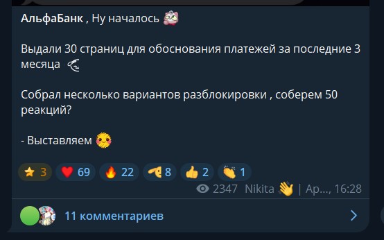 Контент ТГ Арбитражный вайб был больше посвящен трудностям, с которыми российские арбитражники сталкивались в то время. Периодически автор проекта пытался привлекать подписчиков к отработке своих связок в разных платежных системах.