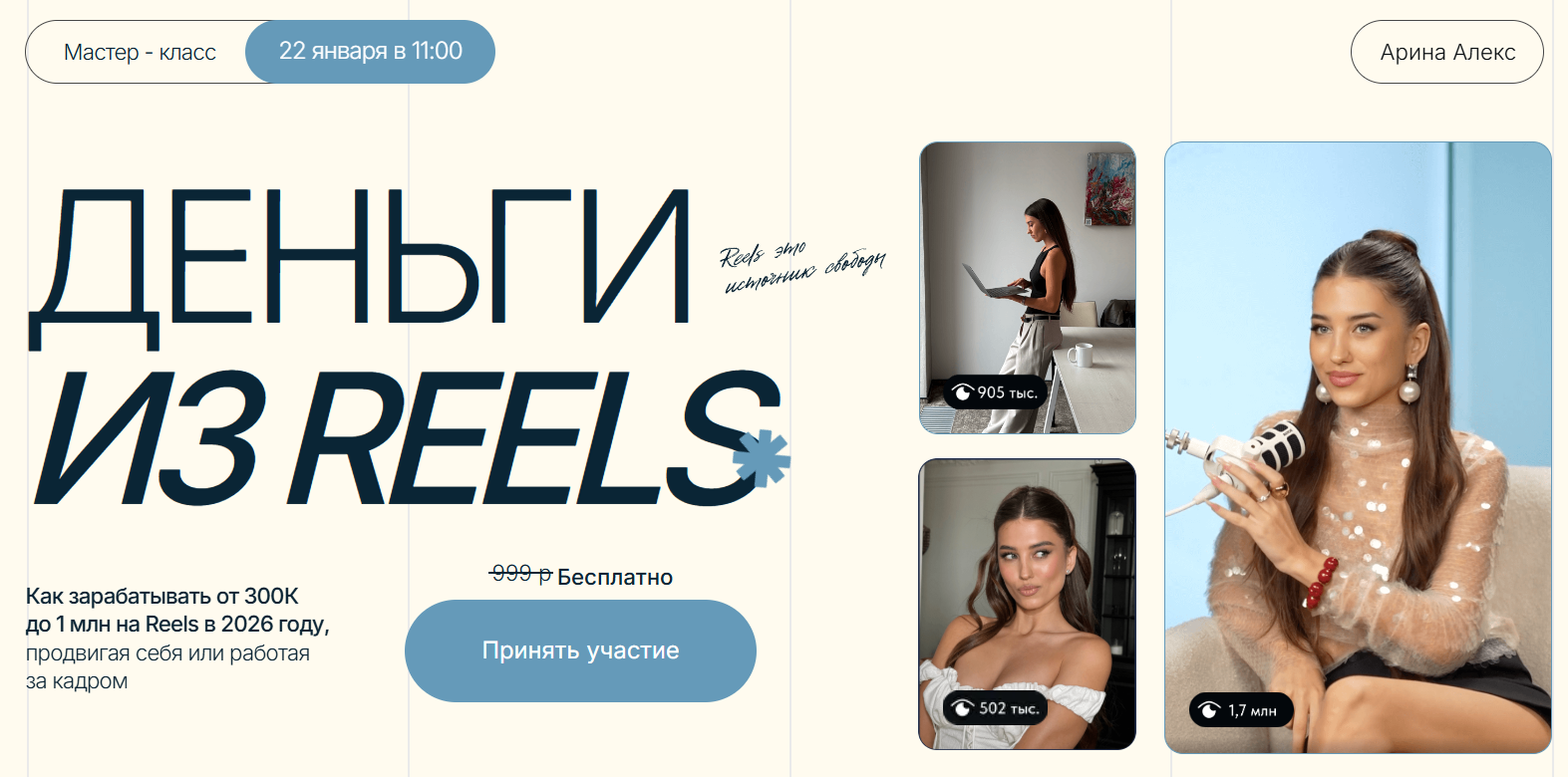Из минусов сразу отметим отсутствие описания полноценной программы обучения у блоггера Арины Алекс. Свои услуги она распространяет через бесплатные вебинары и марафоны – исключительно на них пользователям и предлагают приобрести курсы. Это лишает возможности самостоятельно ознакомиться с предложением автора.