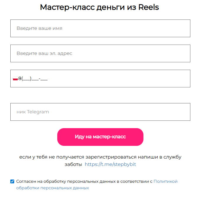 Для регистрации на бесплатное занятия обязательно нужно заполнить анкету на ArinaAlexx Ru. Даже если пользователь не явится на сам мастер-класс, его контакты, скорее всего, будут использовать для рассылок и спама.