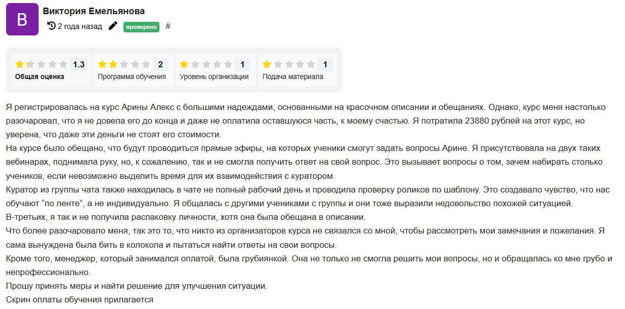 Обзор деятельности ментора Арины Алекс: отзывы реальных учеников, стоит ли покупать курсы на ArinaAlexx ru