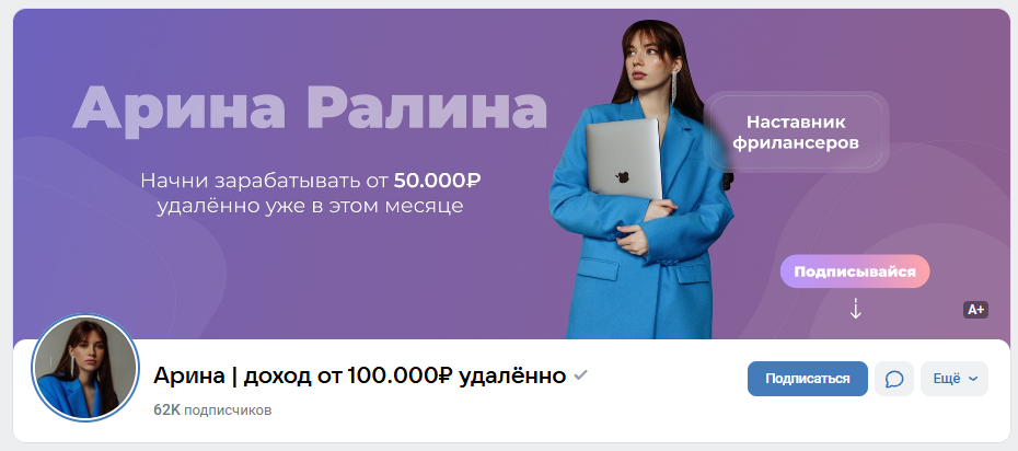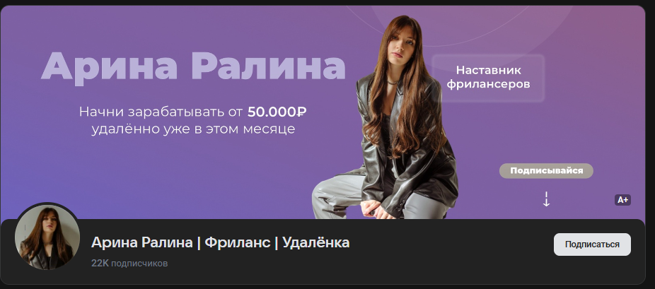 Чтобы определить, мошенники или нет в компании по фрилансу Арины Ралиной, мы изучили отзывы в интернете и проанализировали социальные сети проекта. Например, за сообществом @ar_freelance следит около 62 000 человек, что может являться внушительным показателем и говорить о популярности проекта.