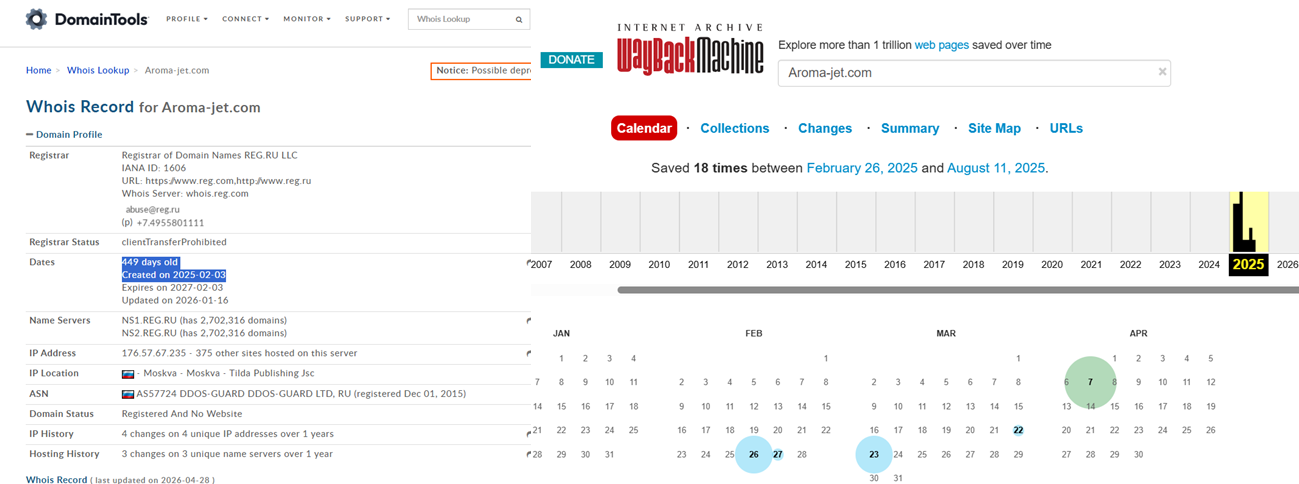 Архивы сайта WaybackMachine подтверждают, что ресурс запустили в феврале 2025 года. На апрель 2026 года проекту год и два месяца. Информация о владельце и компании, на которую зарегистрировали портал, скрыта.