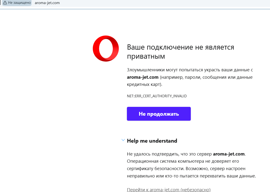 Домен сайта AromaJet, франшиза которого составляет основной заработок его основателей, купили в феврале 2025 года. Перед входом на портал появляется предупреждение, что человек заходит на свой страх и риск.