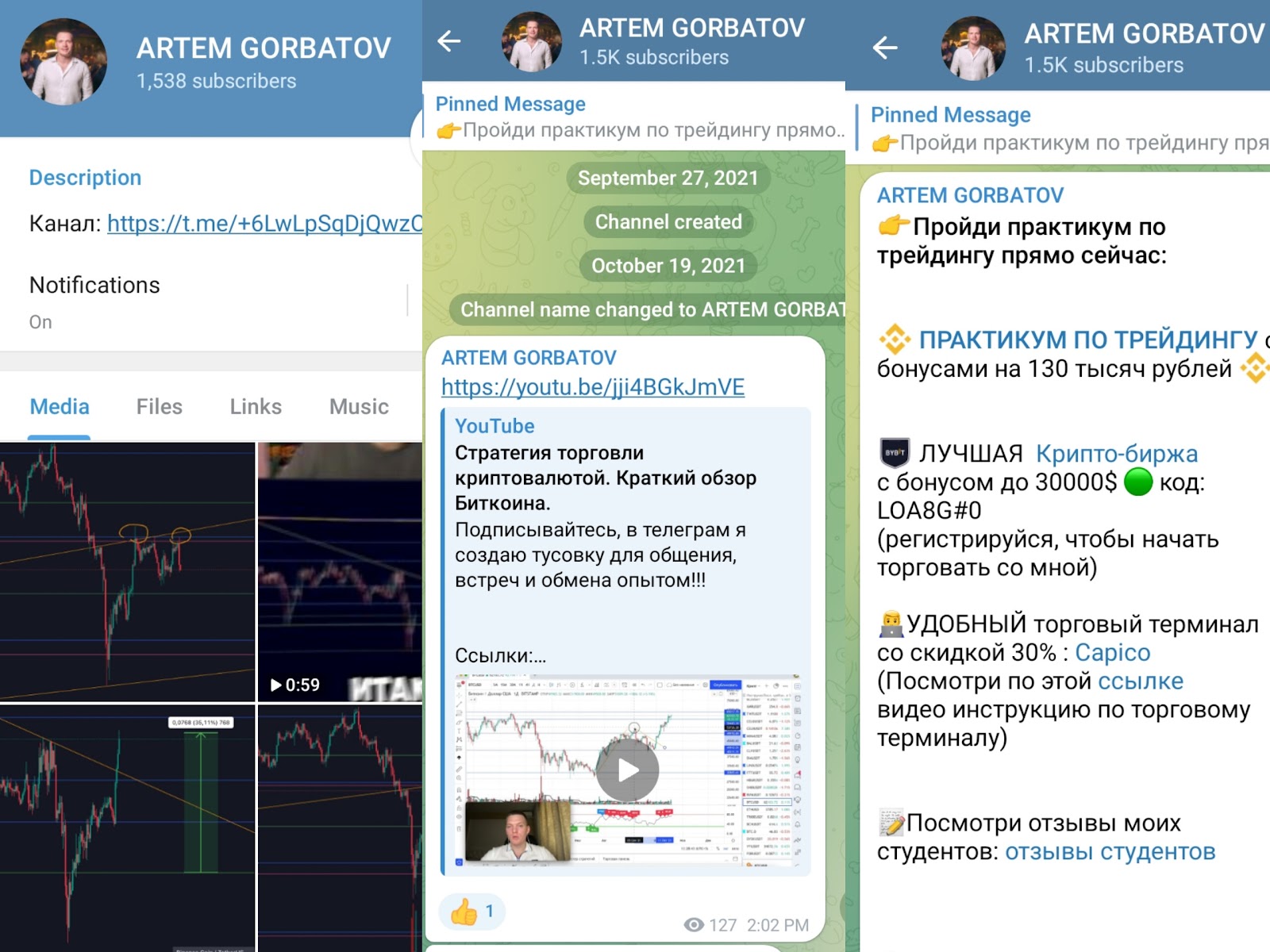 Артем Горбатов не подтверждает реальный уровень профессионализма в трейдинге. Он регулярно продвигает партнерские ссылки для регистрации на биржах и получил неоднозначную репутацию. Минусы: