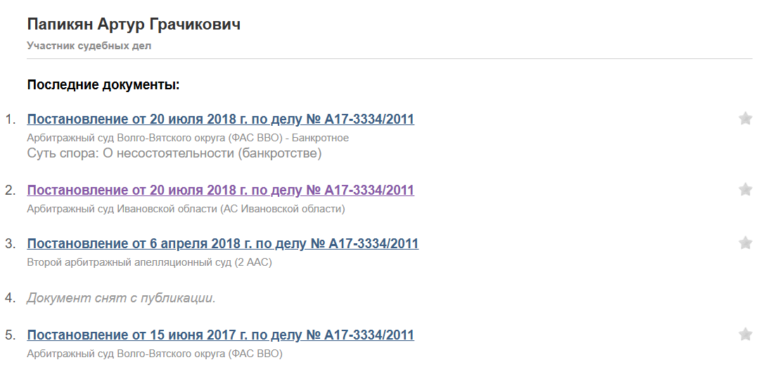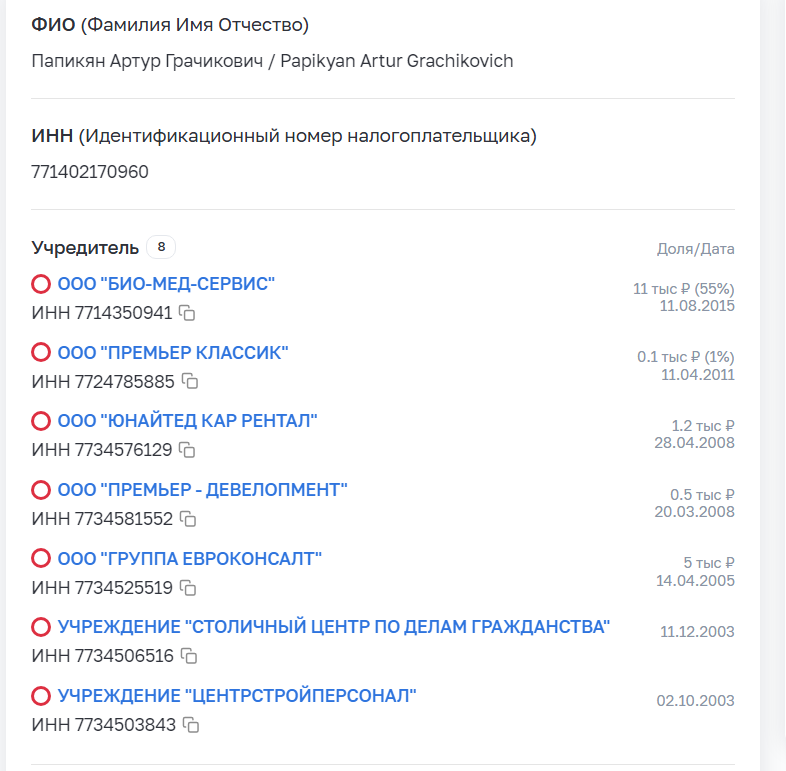 - В отношении Артура Папикяна есть дела о банкротстве, значит он может быть крупные долги и платить их за счет клиентов.