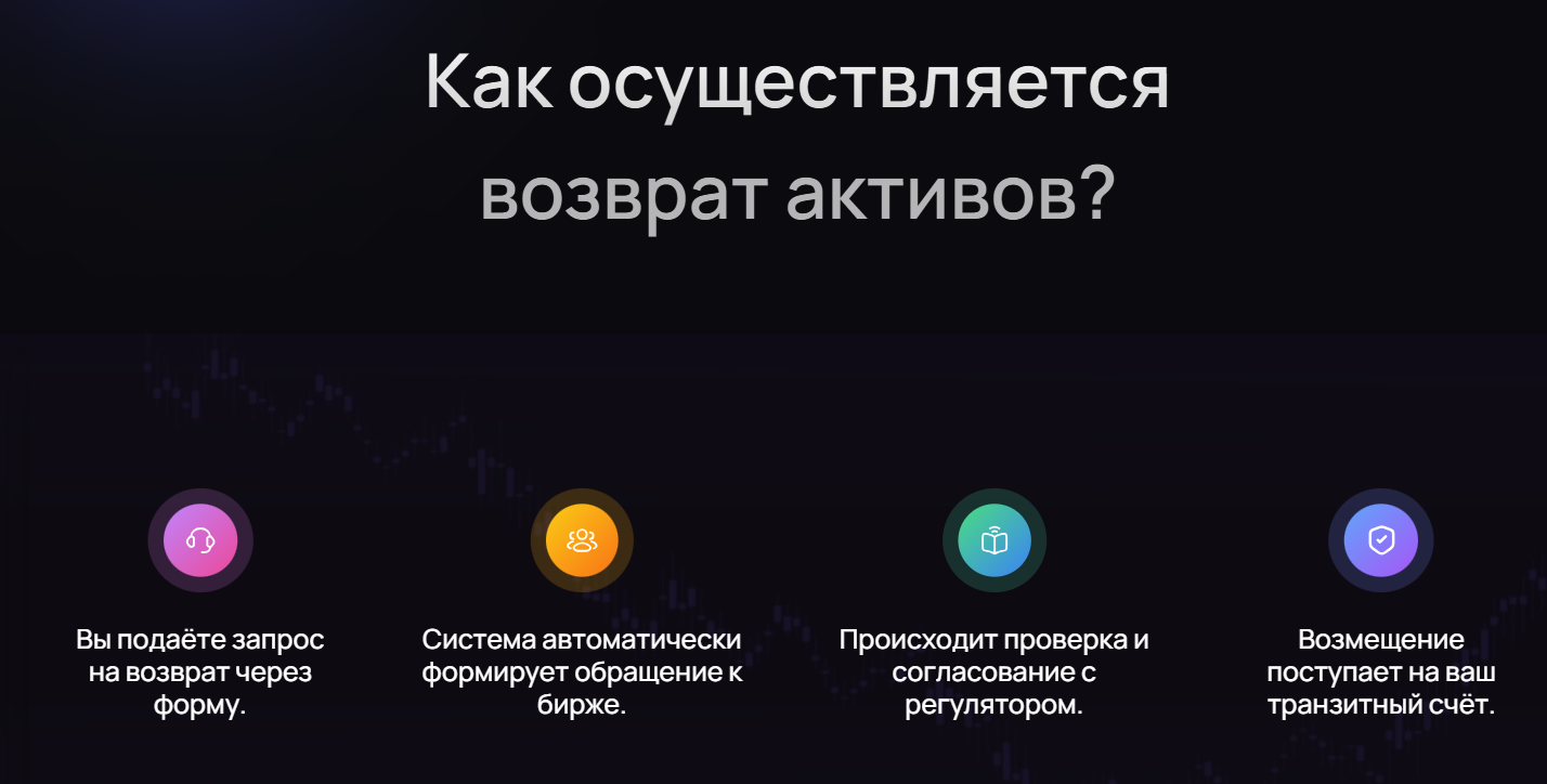 Основная услуга — возврат средств с мошеннических проектов. Ее алгоритм выглядит так: