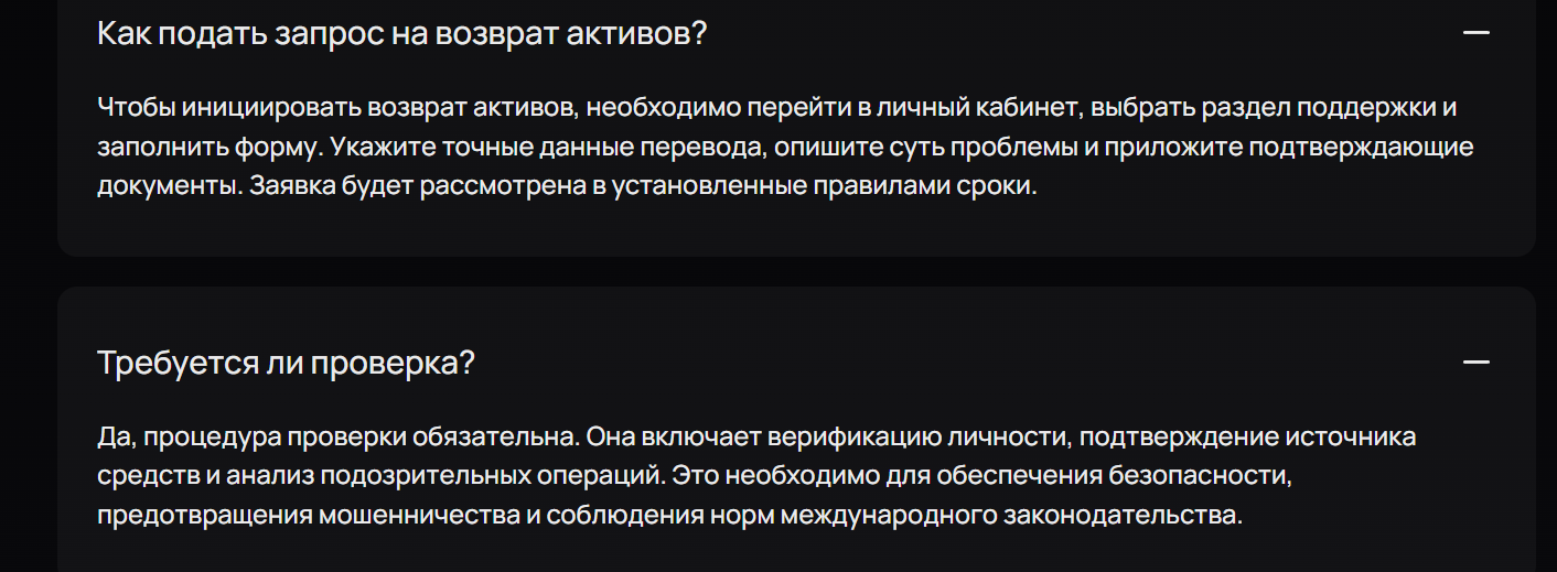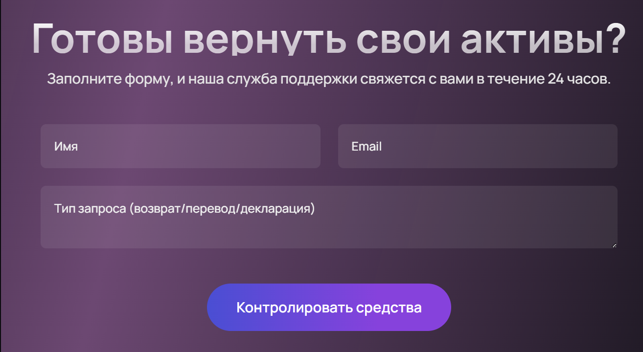Это наглядно подтверждает, что основная миссия проекта — сбор заявок и работа с утерянными криптофинансами.