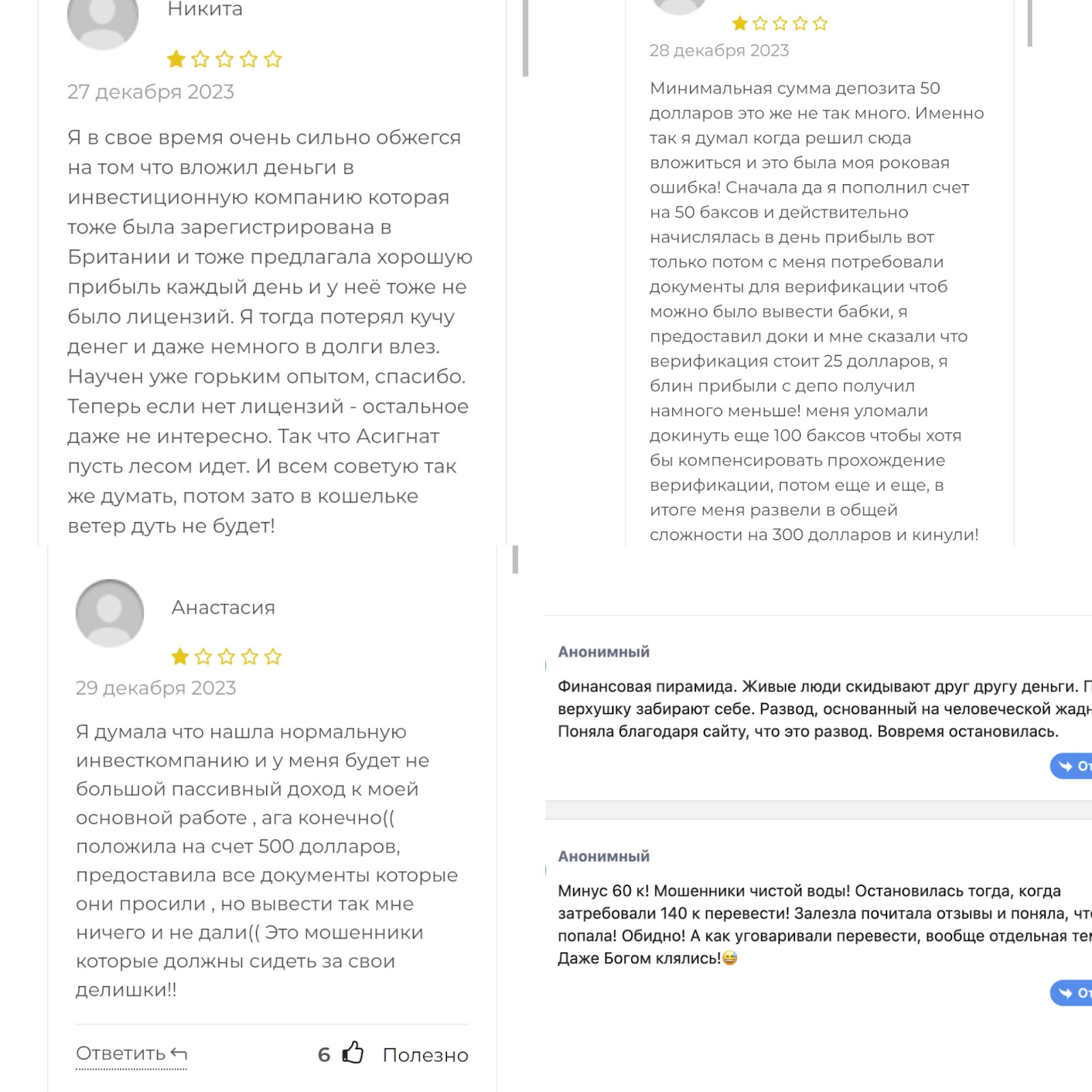 - отрицательные отзывы о компании Асигнат, так как вывести деньги нельзя.