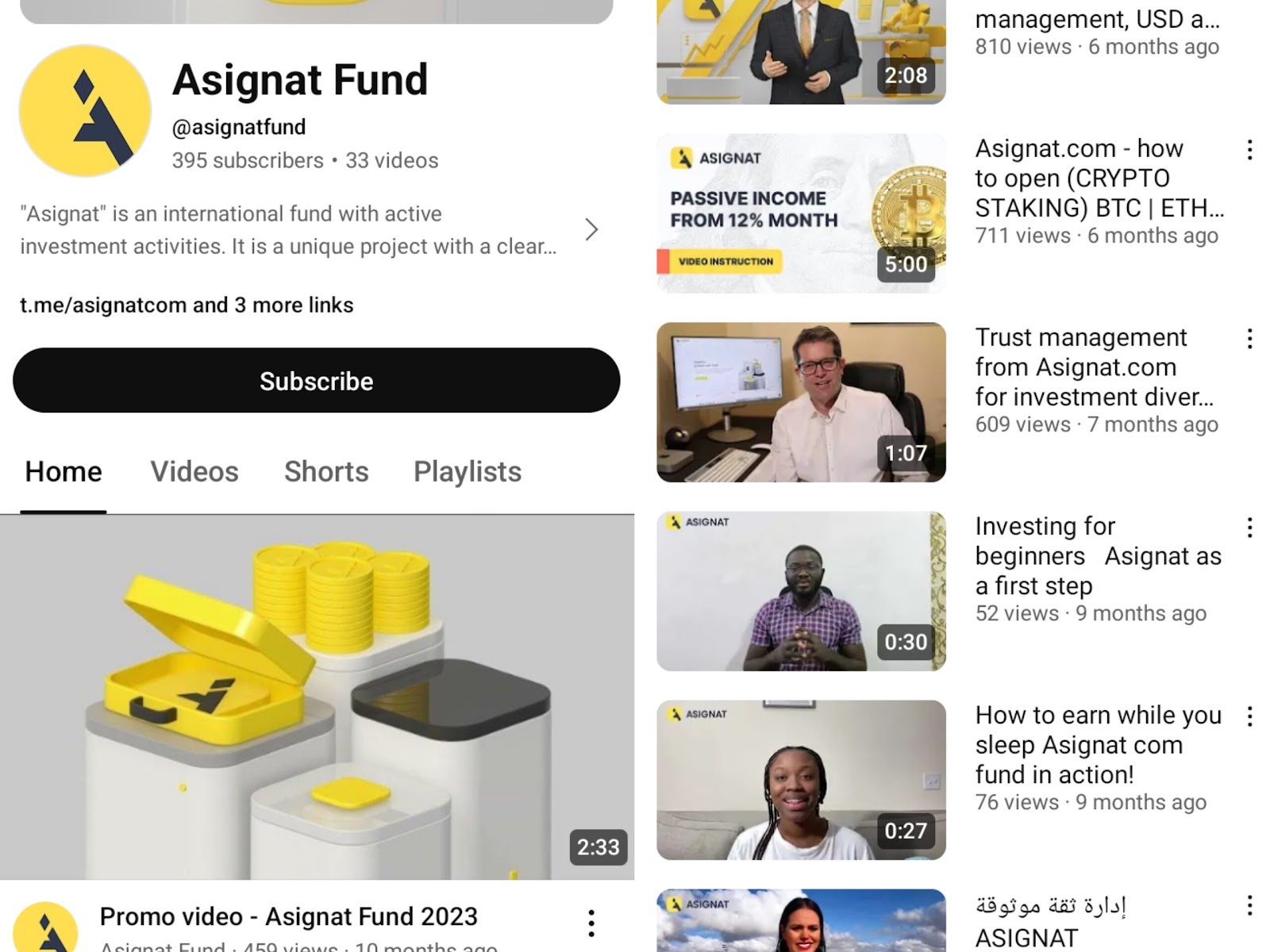 Ютуб канал Asignat Fund (Asignatfund) работает с 14 сентября 2023 года. Его аудитория — 395 человек.