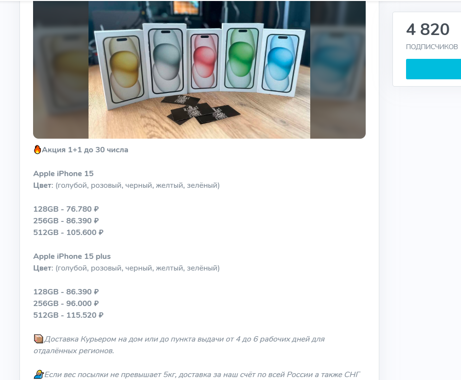 Сам канал появился в 2021 г., а статистика ТГ показывает, что ему якобы уже больше четырех лет. В мире телеграмм-торговли такие “возрастные” каналы — обычное дело: их покупают, старый контент стирают и запускают заново, чтобы внушить новичкам ощущение надежности и опыта. Поэтому реальная история Атлант Стор может быть куда короче, чем выглядит на первый взгляд.