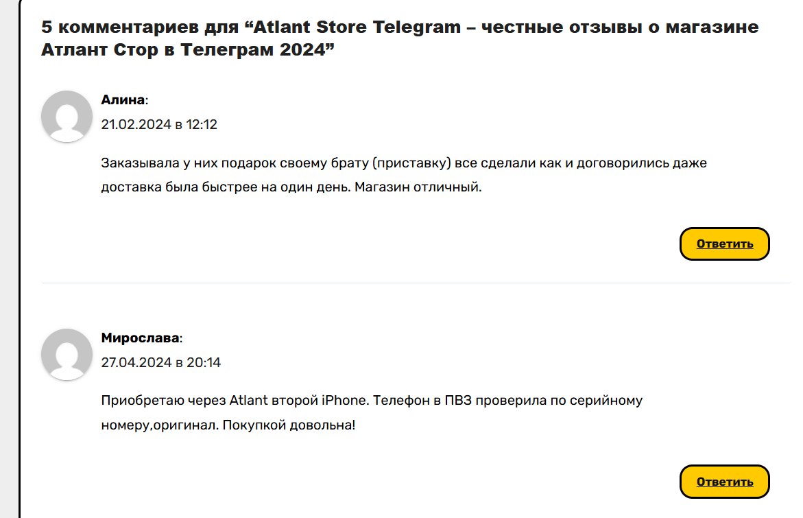 Atlant Store: отзывы в телеграмм и детальный разбор проекта