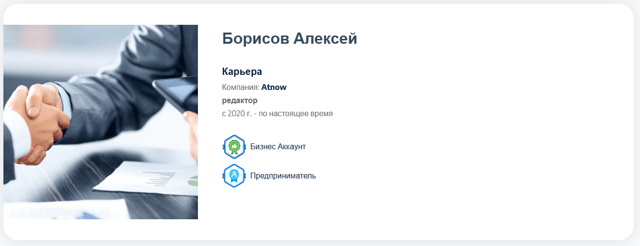 У одного из редакторов местом работы обозначена компания Atnow и вместе с тем зарегистрирован Бизнес-аккаунт. Заметим, что Atnow нельзя назвать компанией, так как это просто портал, зарегистрированный самозанятым, а не ООО.На платформе могут разместить свои бизнес-планы, для того чтобы инвесторы откликнулись на них, предложили вложить свои средства в развитие перспективных проектов. Помимо этого на сайте есть форум, на котором инвесторы могут размещать свои предложения. Однако некоторые из них не выглядят так, будто их действительно составлял профессионал. Так, например, некий анонимный инвестор предлагает свои вложения от 5 до 100 миллионов рублей без какой-либо конкретики.